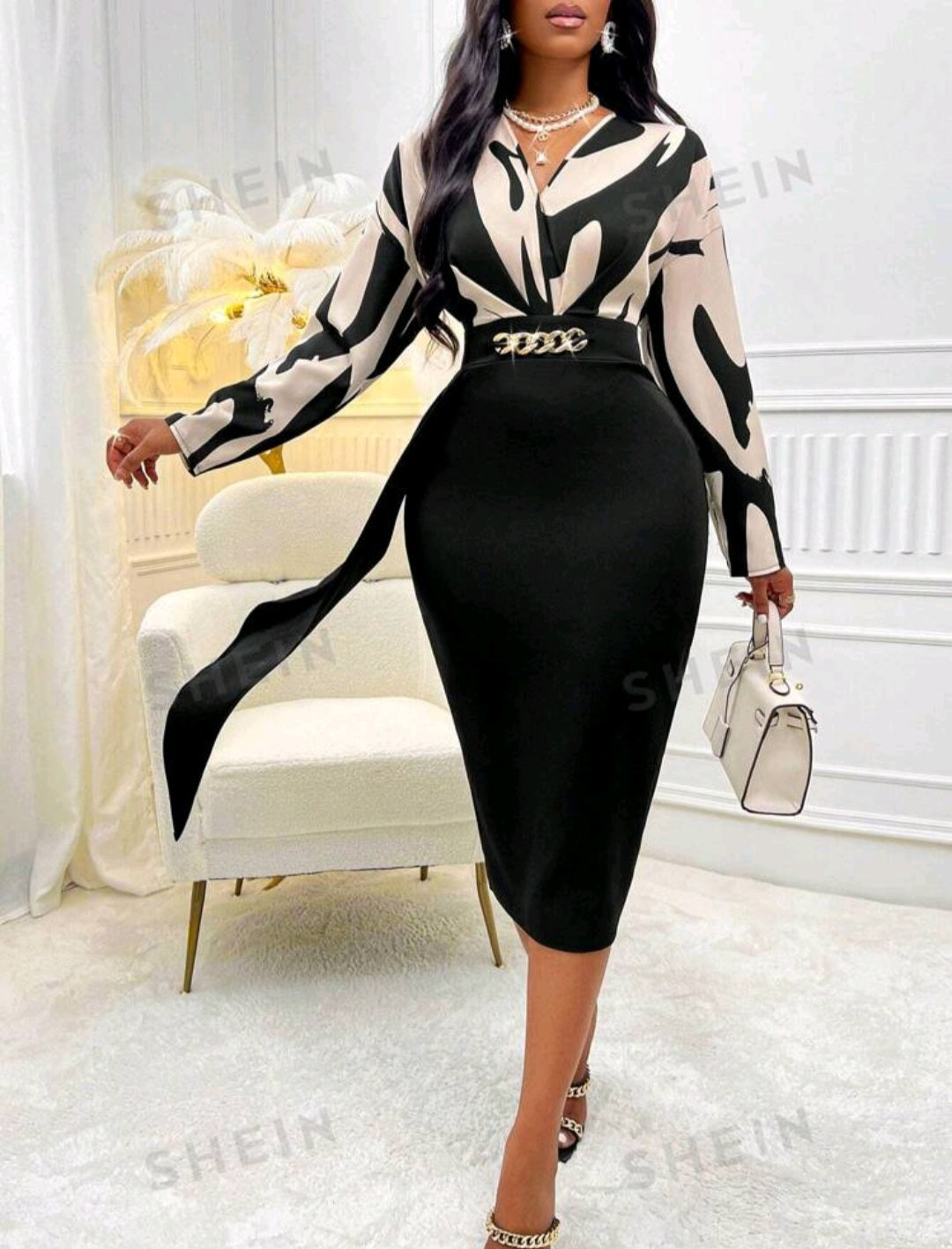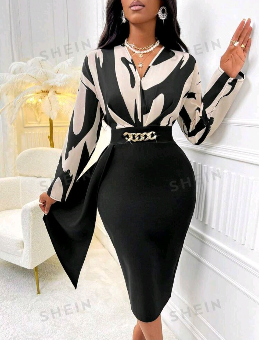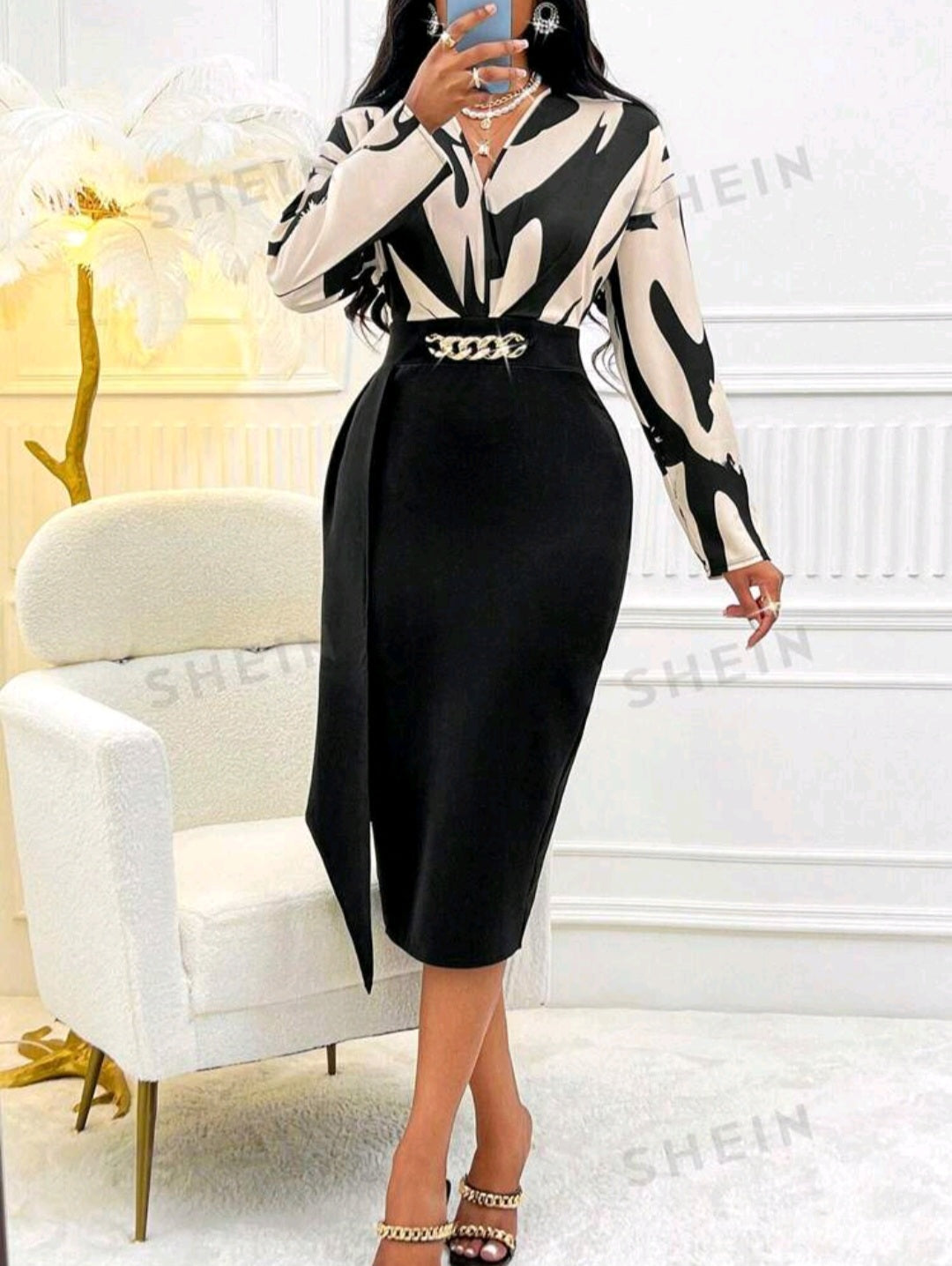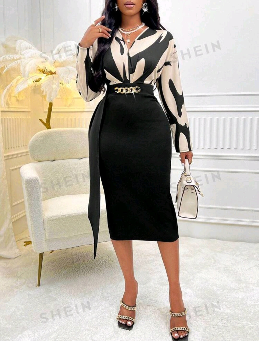 Abito con Stampa Grafica e Drappeggio Frontale Shein Modely (senza Cintura)