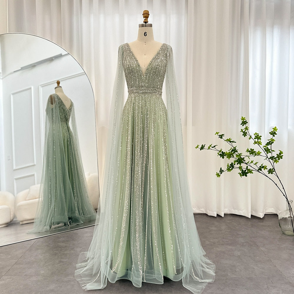 Non lasciare che la tua occasione speciale passi inosservata. Scegli l'abito da sera di lusso nude di Dubai con maniche a cappa in rosa cipria e preparati a fare una splendida entrata che sarà ricordata per sempre.