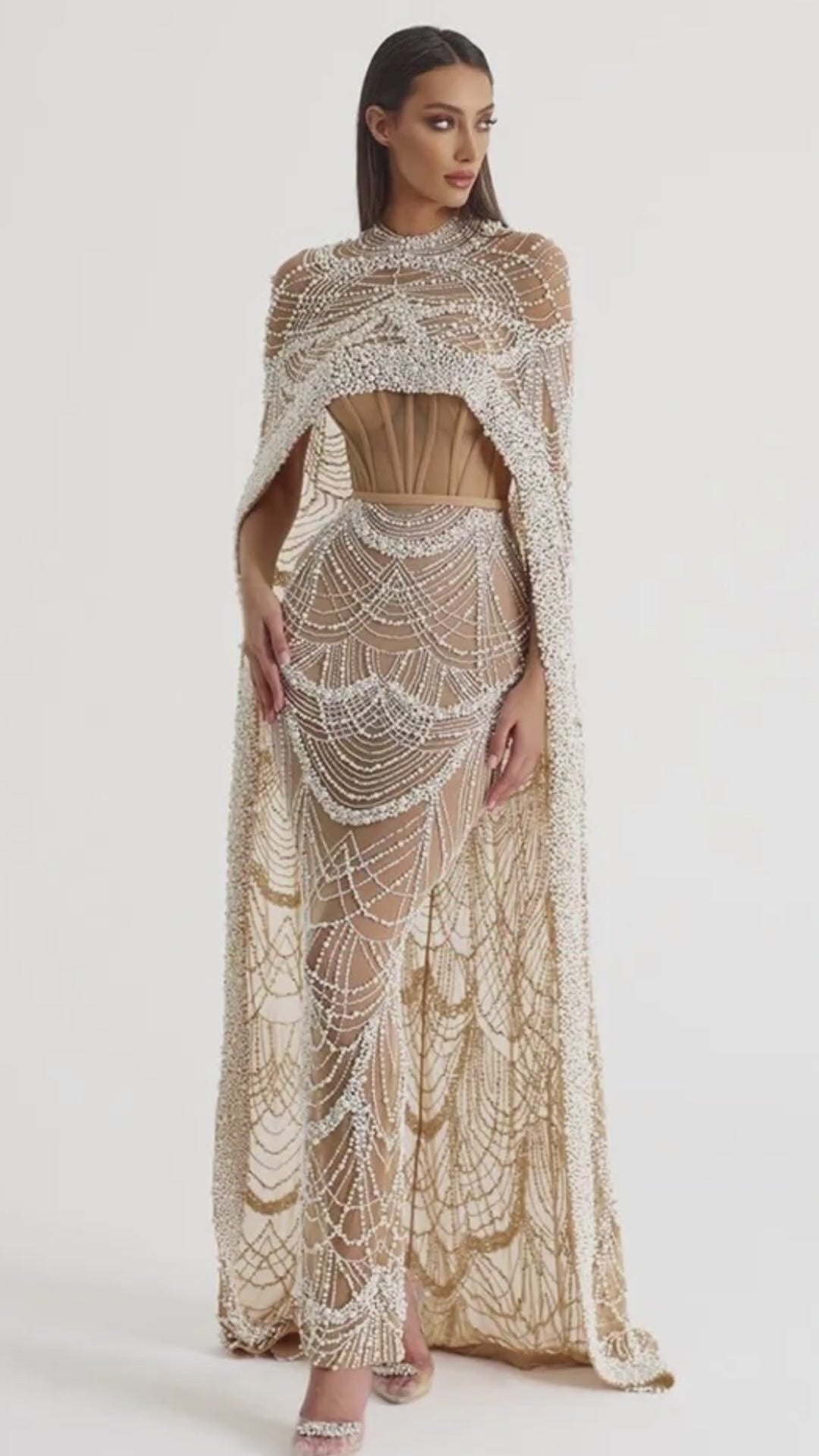 Esplora la nostra straordinaria collezione di abiti da sera di lusso a Dubai con perle, arricchiti da un elegante mantello. I nostri abiti mermaid, perfetti per matrimoni arabi e feste di gala, catturano l'essenza della raffinatezza e dell'eleganza. La fusione magistrale di design arabesco e stile contemporaneo dona a ogni abito un tocco distintivo. Scegli tra una selezione di sontuosi abiti da sera per creare un look indimenticabile e affascinante nel 2023. Affina il tuo stile con il glamour intramontabile delle perle e il magnifico design delle nostre creazioni. Acquista ora e lasciati ammaliare dall'opulenza dei nostri abiti da sera di lusso con mantello a Dubai.