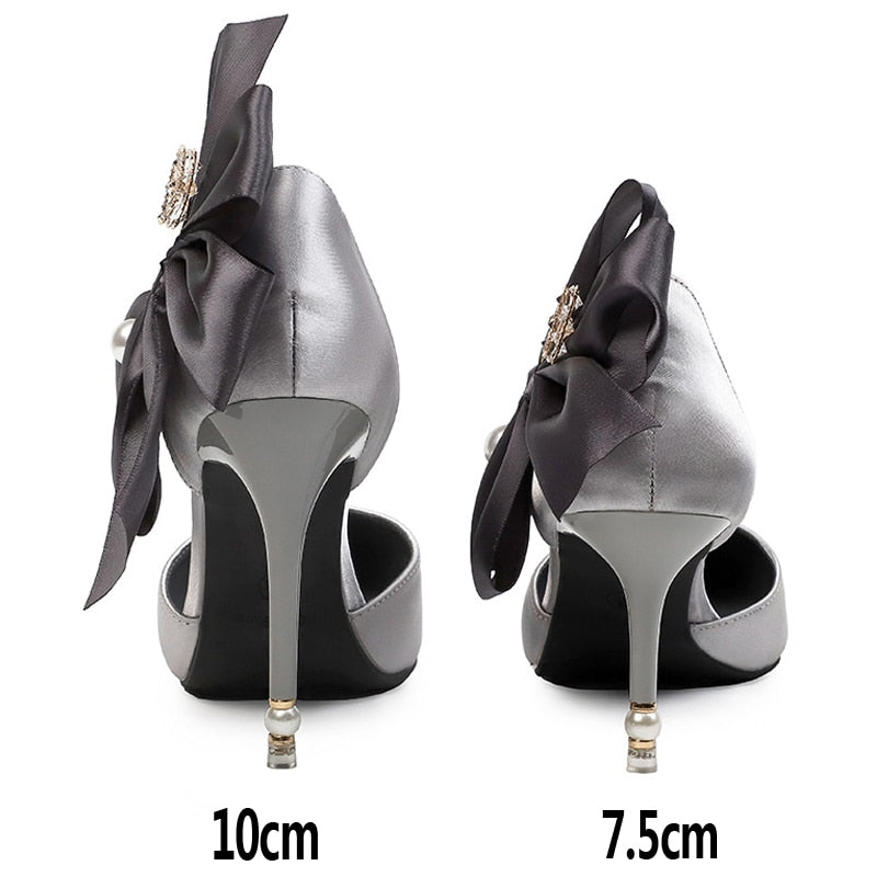 Scarpe Sposa Fatte a Mano 2023 con Fiocco Nuovo, Tacchi Alti, Sandali Designer in Raso con Tacco a Stiletto, Tacchi Sexy in Perla per Matrimoni