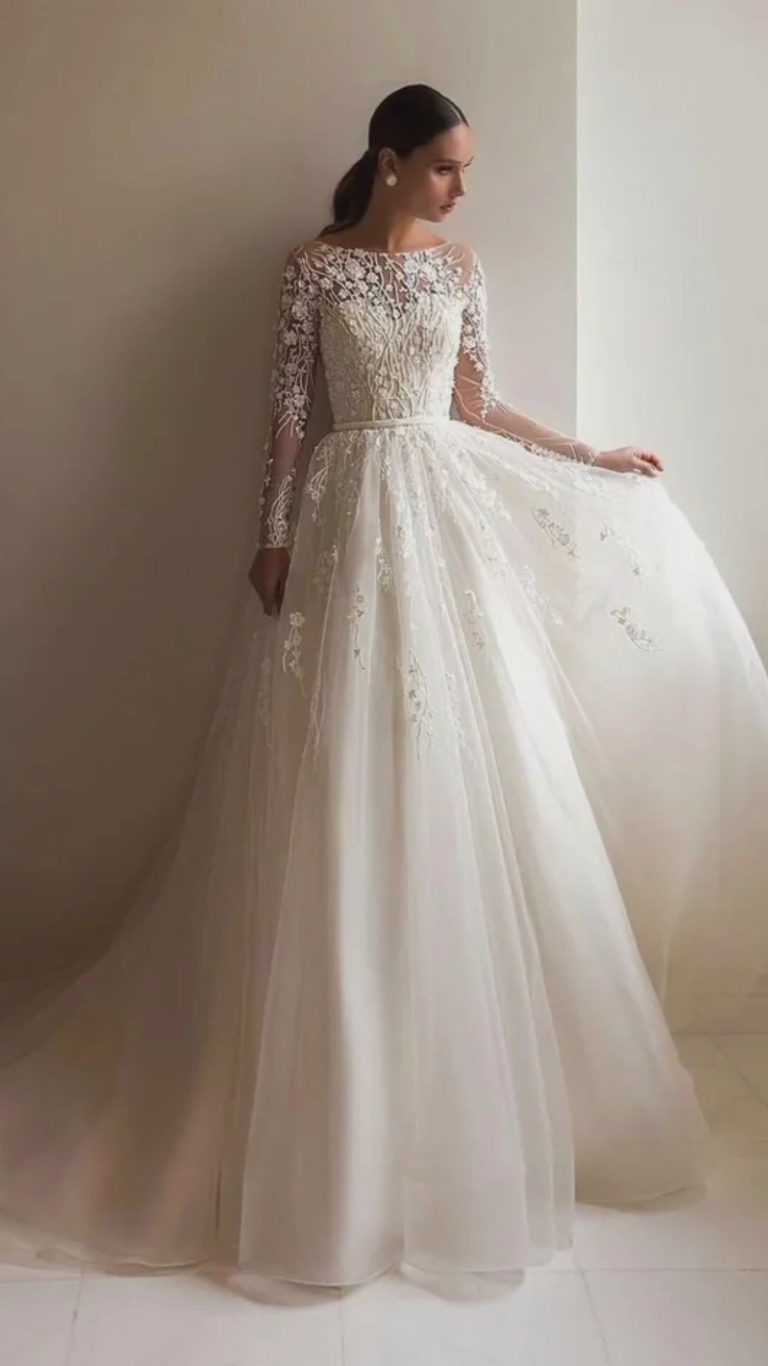 Abito da sposa in pizzo: abito da sposa a maniche lunghe