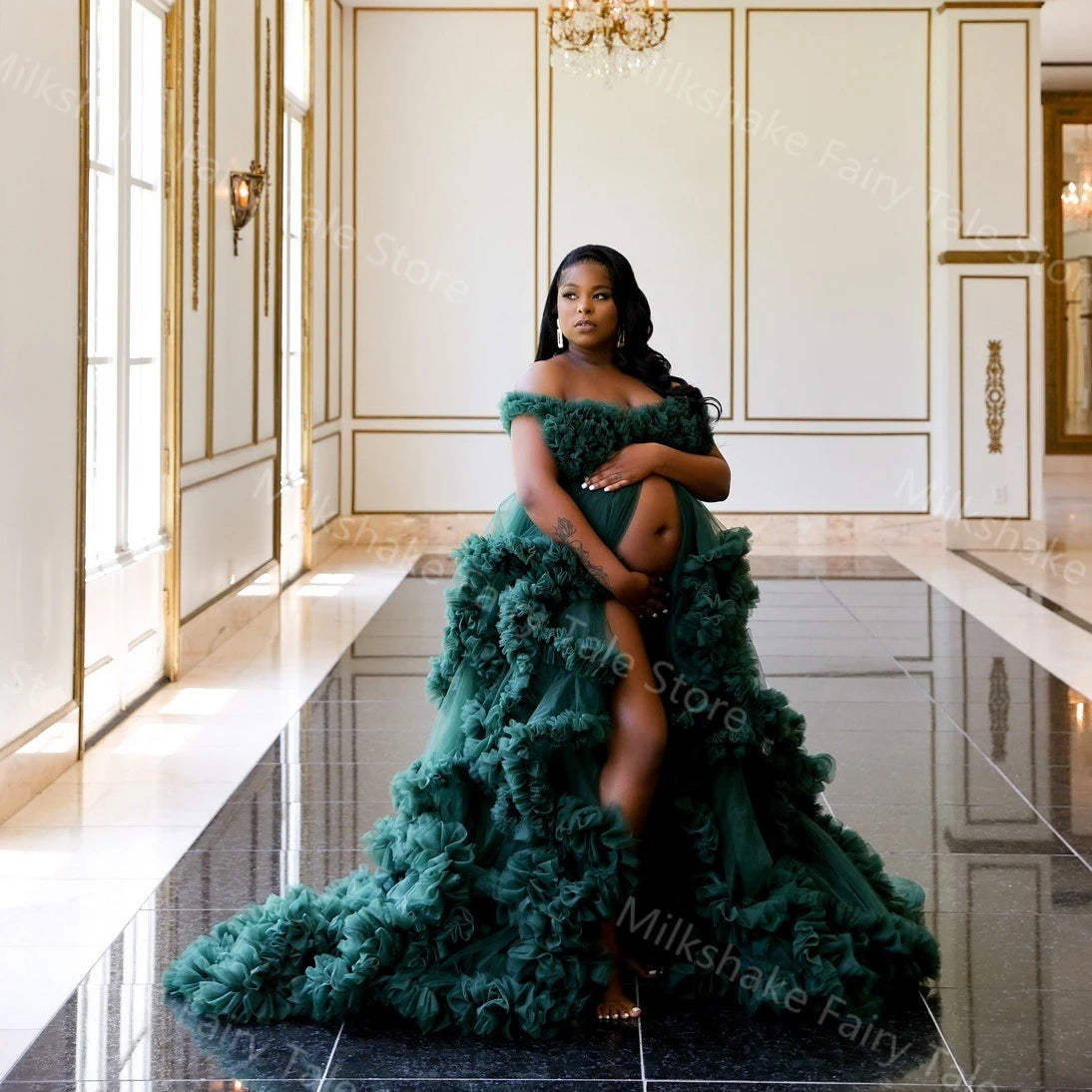 Abito da Foto per Donne Incinte in Tulle con Balze e Gonna Svasata - Vestaglia Maternità in Tulle Puffoso per Shooting Fotografico e Baby Shower