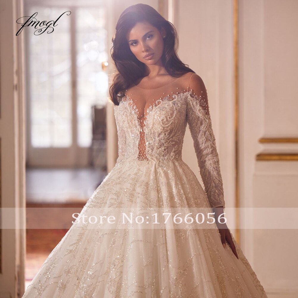 Esclusivo Abito da Sposa da Principessa 2024 Gonna da Ballo di Lusso con Maniche Lunghe e Ricami in Pizzo