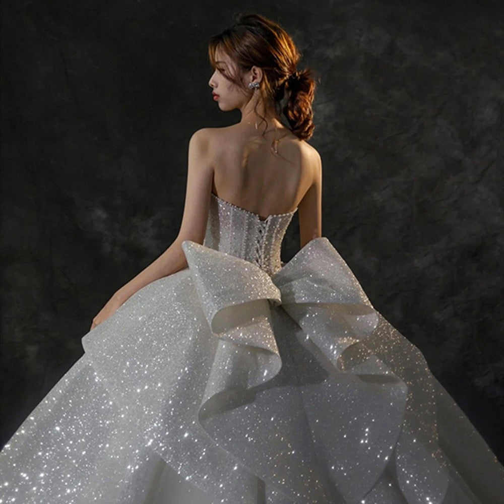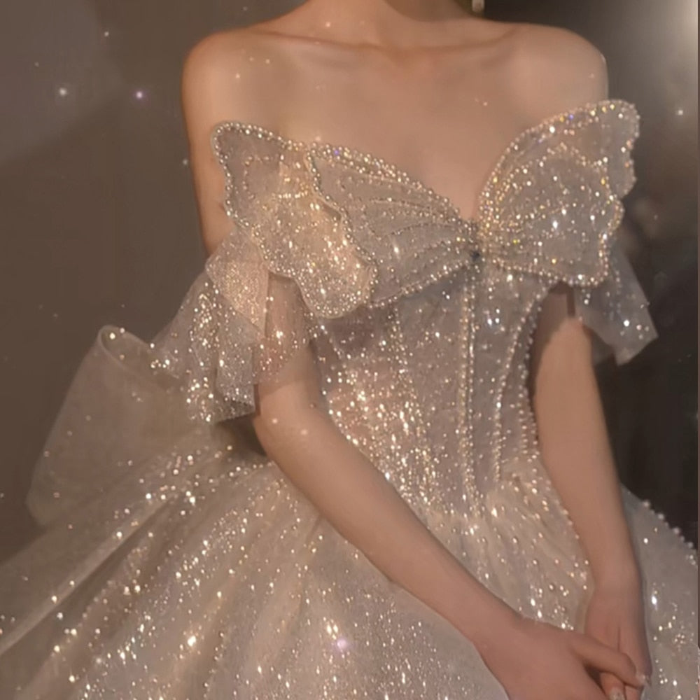 Abito da sposa Vestidos De Novia con perle a farfalla, scollo a cuore, schiena con lacci, super luminoso, con gonna svasata a cappella di 150 cm