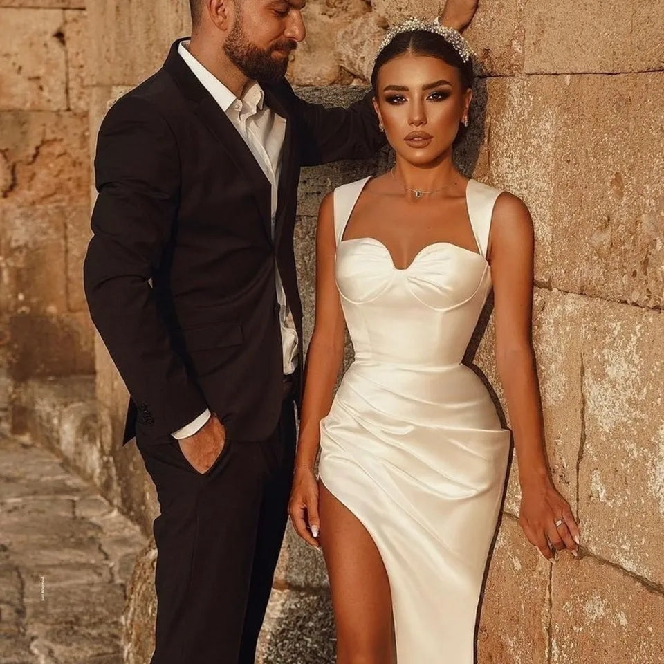 Abito da sposa in raso chic con scollo a cuore e spacco alto